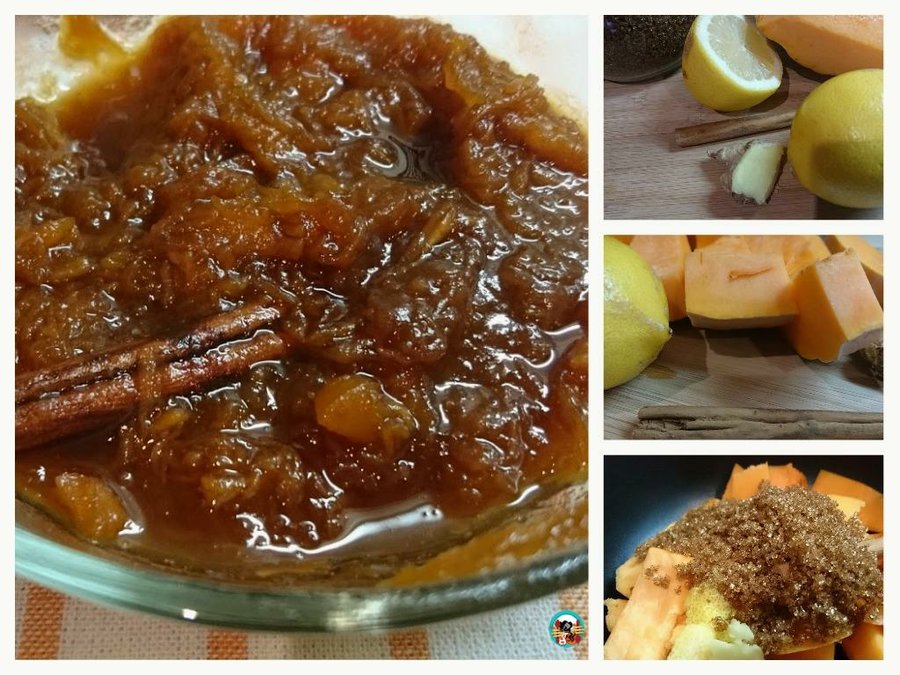 1.- Preparamos la mermelada: En un cazo ponemos la calabaza cortada sin la piel ni las pipas. Añadimos el agua, el azúcar, la corteza de limón, los clavos y cocinamos 25 minutos a fuego medio. Removemos de vez en cuando para que no se pegue (Si se seca mucho añade otro poco de agua). Retiramos del fuego, le quitamos la canela en rema, la corteza de limón y los clavos. Reservamos.