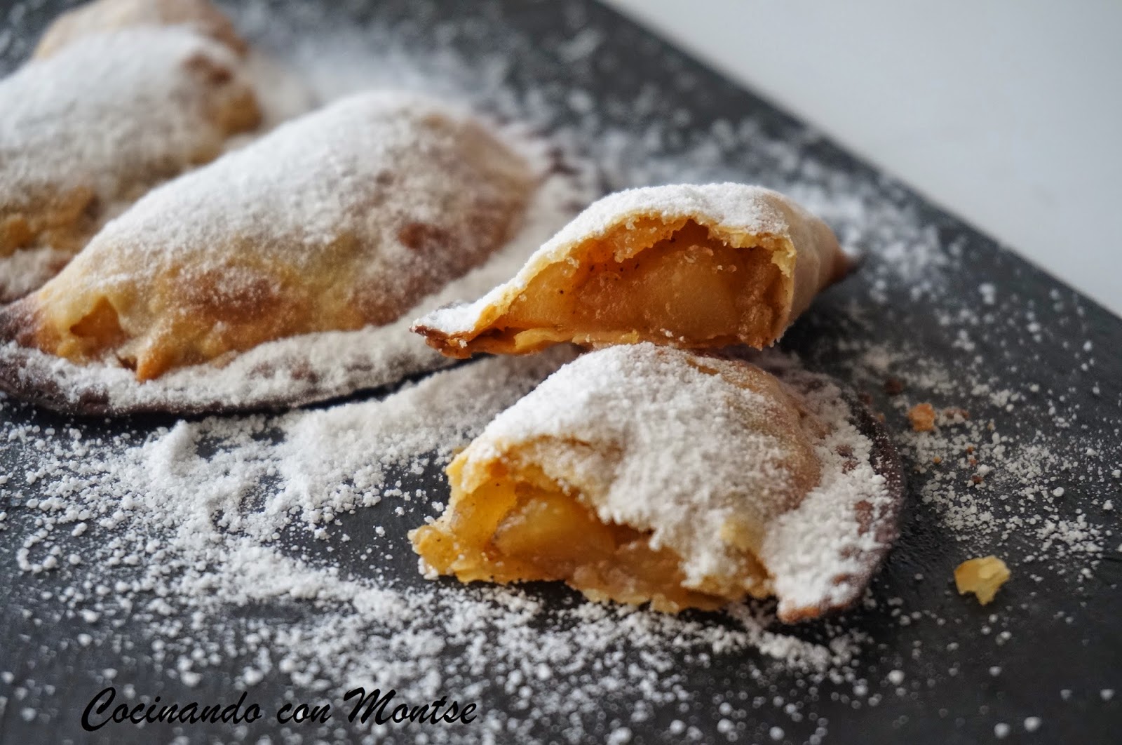 Esta semana os traigo una receta muy sencilla, empanadillas rellenas de manzana. Son típicas para hacerlas en Navidad como postre y también puede ser de aprovechamiento como es mi caso, las suelo hacer cuando en el frutero las manzanas van dando muchas vueltas y no se las comen, la fruta un poco ya madura no les gusta.