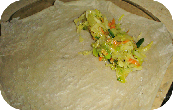 en un crepe poner 2 cucharadas de relleno sobre un borde