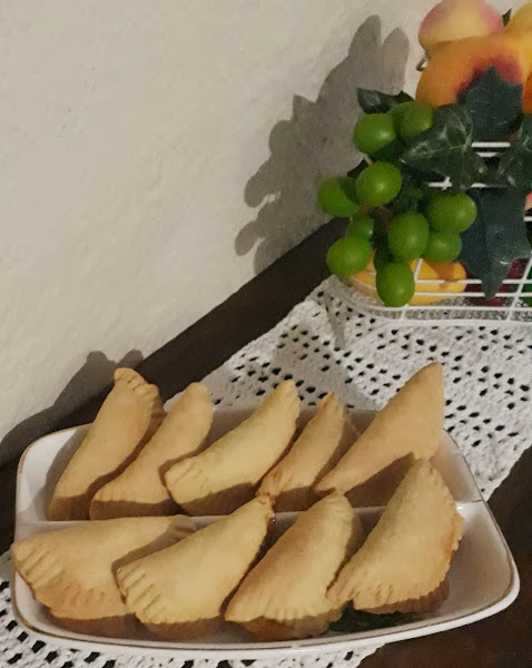 En un tazón coloque la harina,azúcar en polvo y sal mezcle bien,luego agregar la margarina fría en trocitos picar con el estribo o con dos tenedores hasta formar una borona fina, ya lista colocamos el agua fría poco a poco mezcle hasta que una en una bola,con la pasta lista cubrir con plástico de cocina y refrigerar 1hora,con la pasta fría dividir en bolitas y cada bolita extender en forma redonda,a cada redondel de pasta colocar miel de chiverre,cerrar en forma de empanadita,unir las orillas con un tenedor,colocamos las empanaditas en una bandeja engrasada,llevar al horno precalentado a 350grados f por 20 minutos o al dorar. (Puede variar el relleno por una mermelada ojalá espesa o una fruta confitada picada fina)