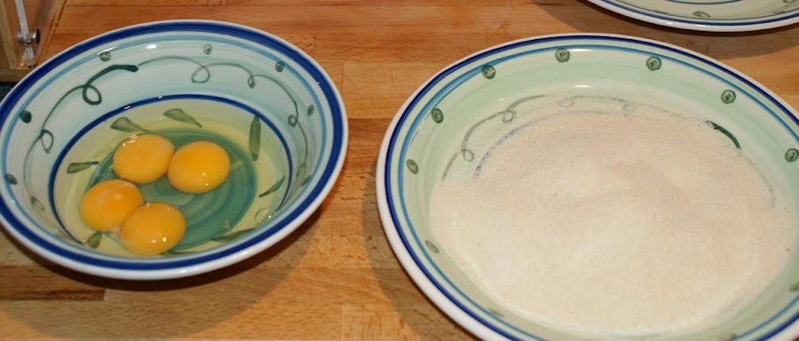Las cantidades obviamente van a depender de la cantidad de cosas que queramos empanar y de si hacemos doble empanado o solo simple. Calcular, más o menos, dos huevos para cuatro filetes normalios y doble empanado (ahora explicaré lo de "doble empanado") No os pongáis a empanar una bandeja de 1/2kg de filetes con solo dos huevos en la nevera, tened por lo menos una docena. Con el pan rallado lo mismo, comprar 1/2kg que si sobra se guarda en la despensa y tarda mucho en ponerse malo.