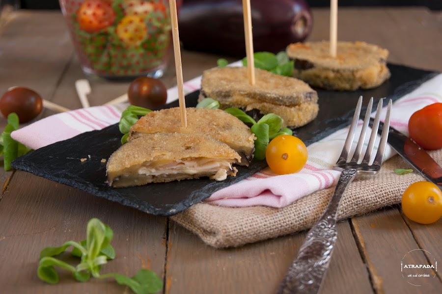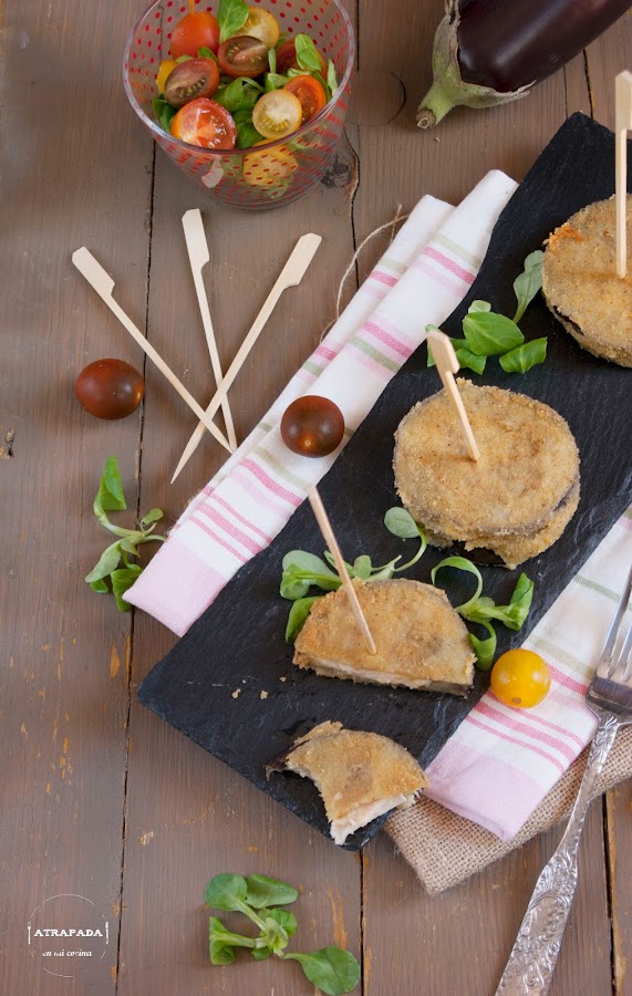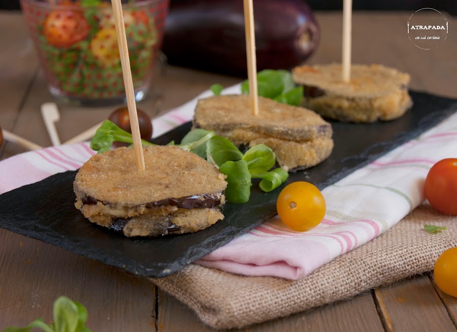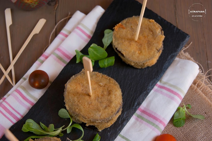 La verdad es que no sabía muy bien cómo llamar a esta receta, pero es que es más complicado el nombre que la receta en sí. Hace tiempo que los probé en una reunión y no me había acordado de ellos hasta el otro día, que tenía berenjenas en casa y no sabía que hacer con ellas. Es un aperitivo ideal para picoteo, que gustará mucho tanto a niños como a mayores y es una forma de encubrir la verdura para quién no le guste.