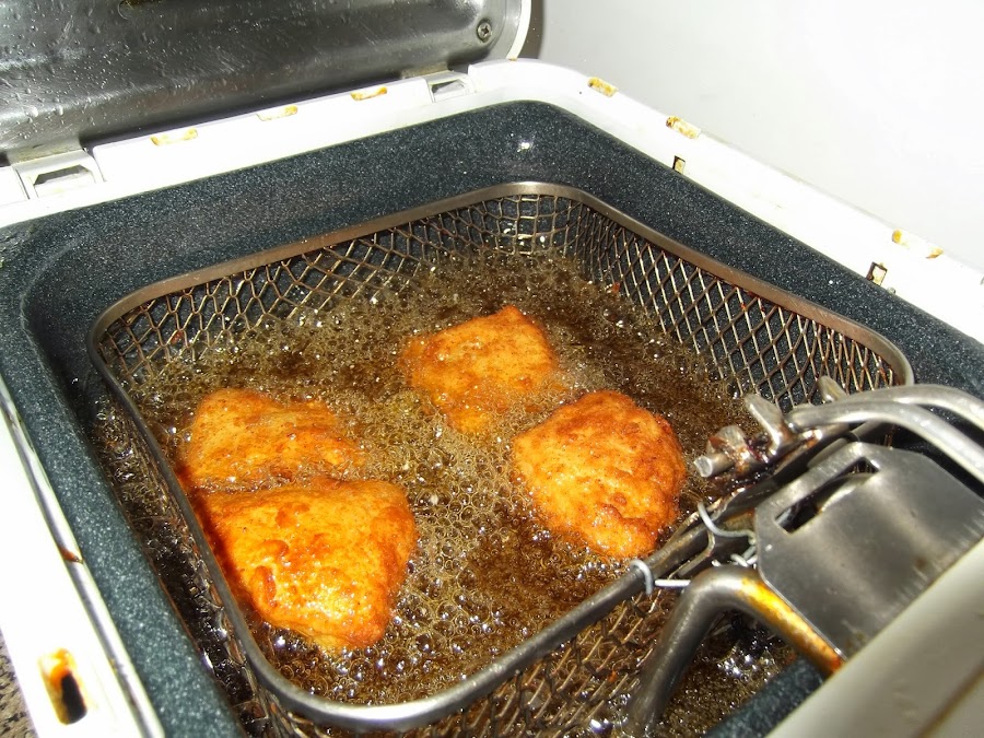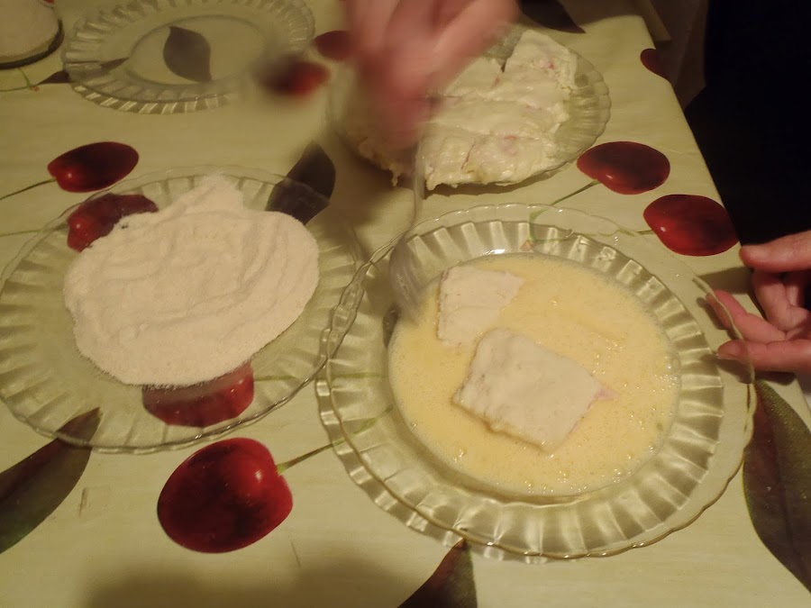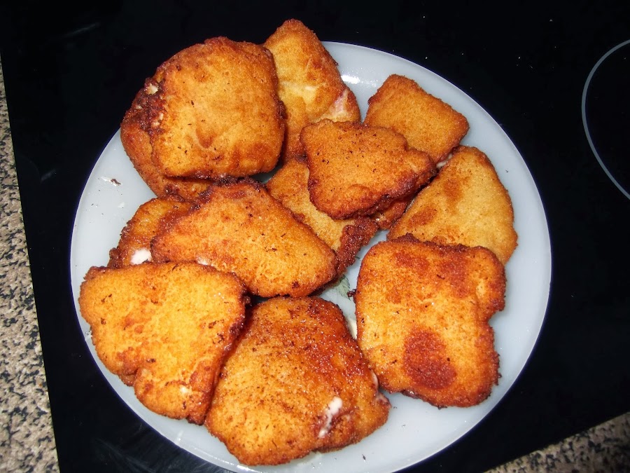 Luego colocáis un plato con los huevos batidos y otro con el pan rallado y vais pasando el emparedado por el huevo y luego por el pan rallado. Los dejáis en la nevera (también se pueden congelar) hasta el momento en que vayáis a servirlos, entonces calentáis el aceite de oliva y cuando esté bien caliente, los echáis para que se frían, se pueden hacer en una sartén o en una freidora lo que os sea más cómodo, en menos de cinco minutos están listos, los colocáis en papel de cocina para quitarles los restos de aceite y ya están listos para comer.
