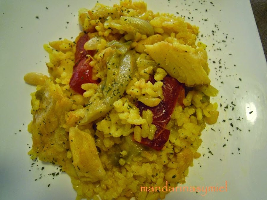 Este arroz no lo he preparado yo, lo hizo mi marido, que de vez en cuando se mete en la cocina y hace algún que otro arrocito, (yo hacía las fotos...)