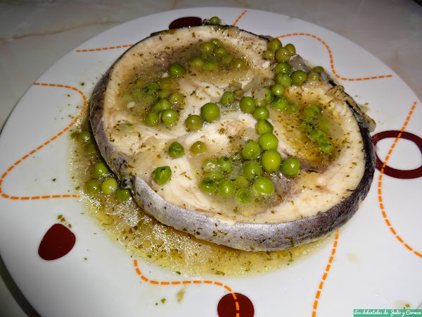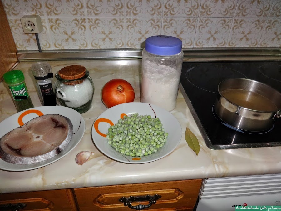 Le pregunte a Carmen mientras hacíamos unos recados, que si le apetecía comer un filete de emperador acompañado de alguna salsa. A ella le pareció una buena idea, pero con la condición de seguir nuestras "normas": la cena tenia que ser ligera. Con esto, me vino a la mente una receta que tenia apuntada desde hacia un tiempo: la salsa verde. Una salsa perfecta para el pescado, ligera y que según decía todo el mundo, estaba muy buena. Vimos que no era complicada y que unía todo lo que queríamos: seguir cenando ligero, a poder ser pescado y si acompañamos con alguna verdura, pues mejor. Emperador + salsa verde + guisantes = una cena perfecta!