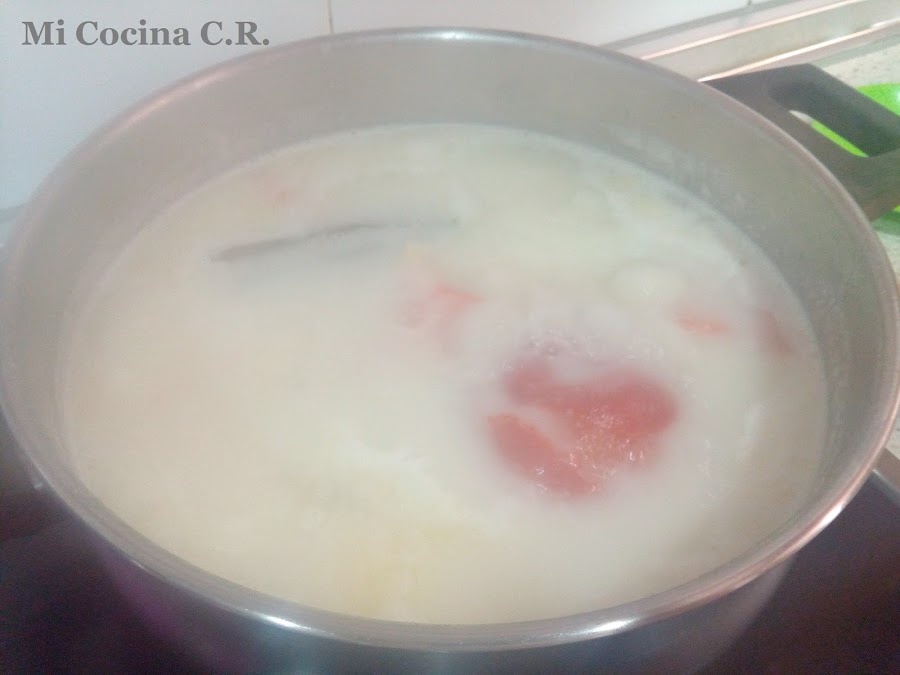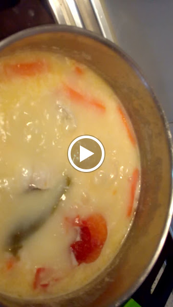 Pero vamos al de mi dulce y querida suegra que más que un en blanco creerán que es un gazpachuelo por el increíble caldo que le suele salir: blanco, espeso, riquísimo…...nada más tienen que ver como hace "chup chup" el caldo mientras se cocina.