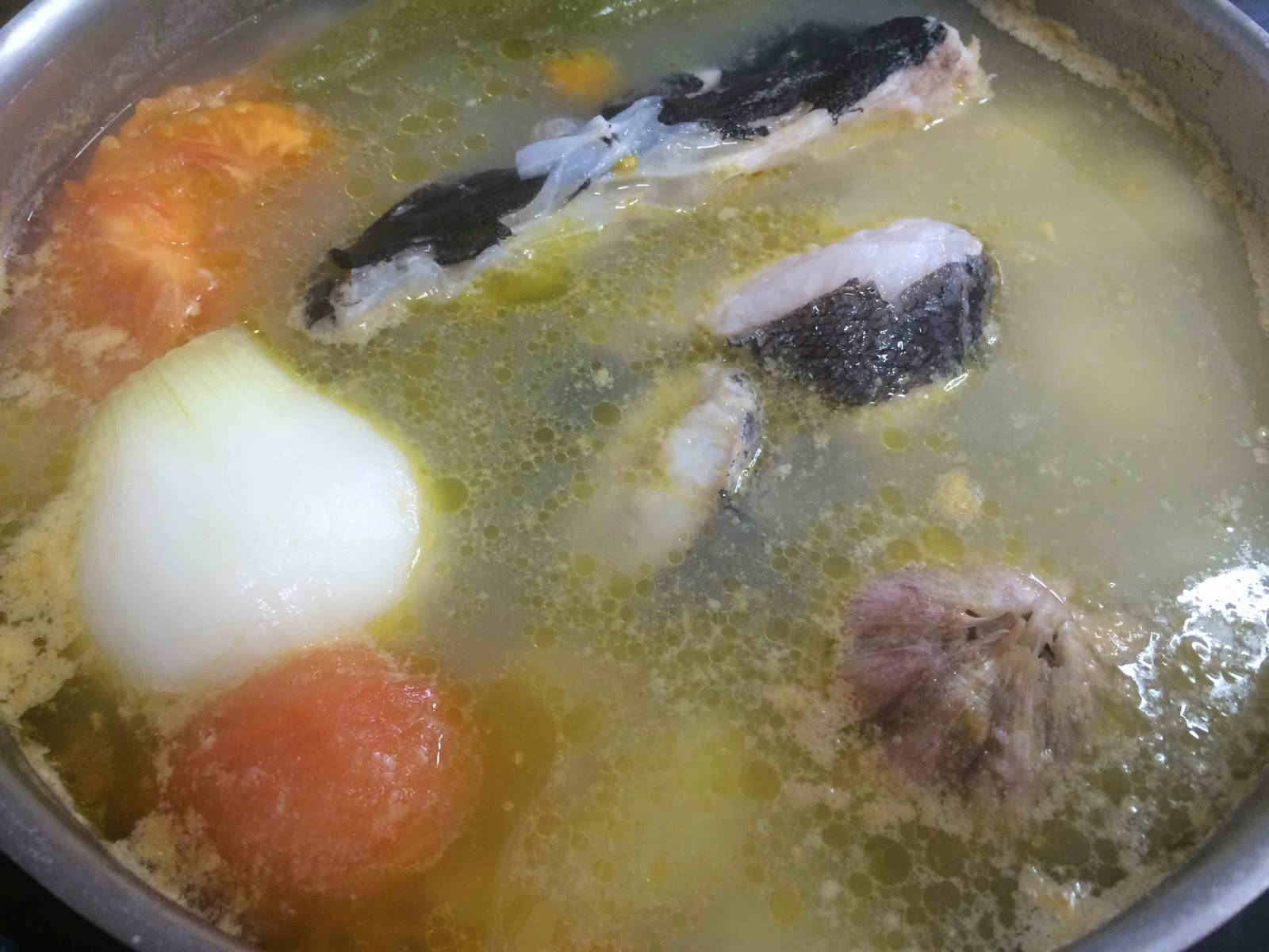 En ese momento agregamos el pescado limpio y cortado en rodajas. Dejamos al fuego unos minutos, lo justo para que se haga el pescado.
