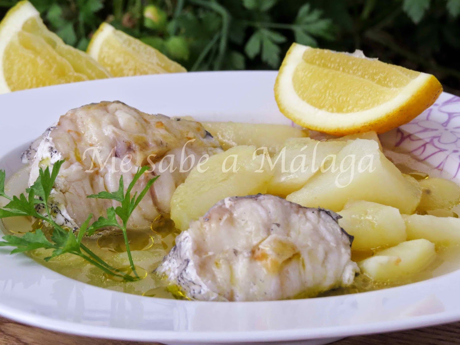 Servimos colocando las patatas y el pescado en un plato. Lo cubrimos con el caldo. Añadimos un buen "chorreón" de limón y un hilo de aceite de oliva antes de tomarla. Si os gusta la pimienta, también se le puede poner un pellizco.