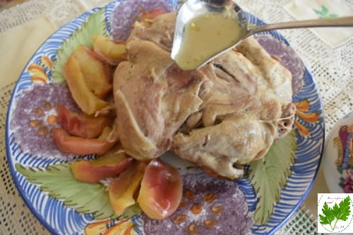 Para servirlo, ponlo junto con las manzanas y el jugo que habrá soltado en una salsera aparte.