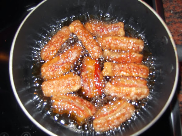 El truco para que freír unos ricos torreznos con una corteza crujiente es primero poner el aceite de oliva a fuego bajo y cuando veamos que ya están un poco refritos subir el aceite para que se terminen de cocinar. No obstante, ahora venden unos torreznos que ya están un poco refritos y nos podemos saltar ese paso y simplemente meterlos en aceite de oliva bien caliente durante cinco minutos y darles varias vueltas para que se hagan por todos los lados.