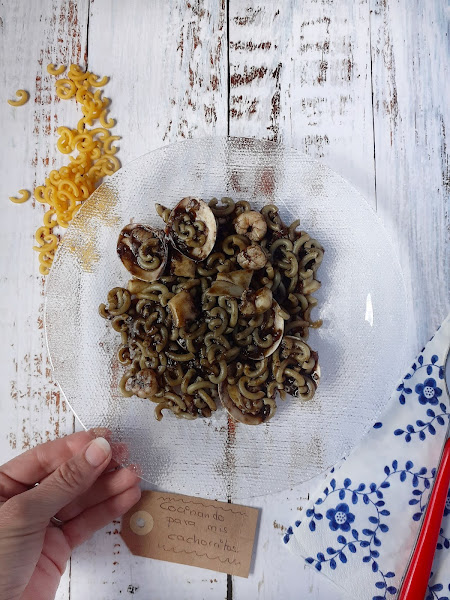 De este modo la cebolla queda oscura y suave, como confitada.Se trata de un plato muy marinero y muy típico en los poblados marítimos."