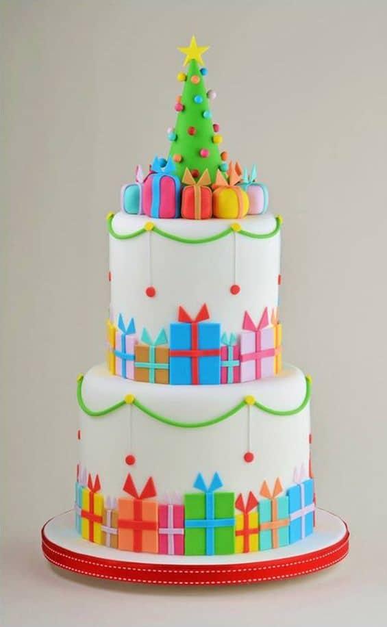También puedes hacer cuadrados y rectángulos con fondant de colores, luego realiza unas tiras simulando los lazos, eso es lo que veo cuando miro esta foto… no veas la perfección de los bordes de la tarta, ni que es de pisos, mira los detalles y tendrás la inspiración para tu tarta.