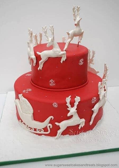 En estas fechas, casi todo está permitido: un Papá Noel boca abajo, por ejemplo, asomando las piernas por una chimenea, unos osos jugando en la nieve. Incluso puedes aprovechar otras facetas que tengas de repostera y mezclar productos. Por ejemplo, partiendo de una tarta cubierta de fondant, puedes decorarla con galletas navideñas, en la parte superior o a lo largo del ancho de la tarta.
