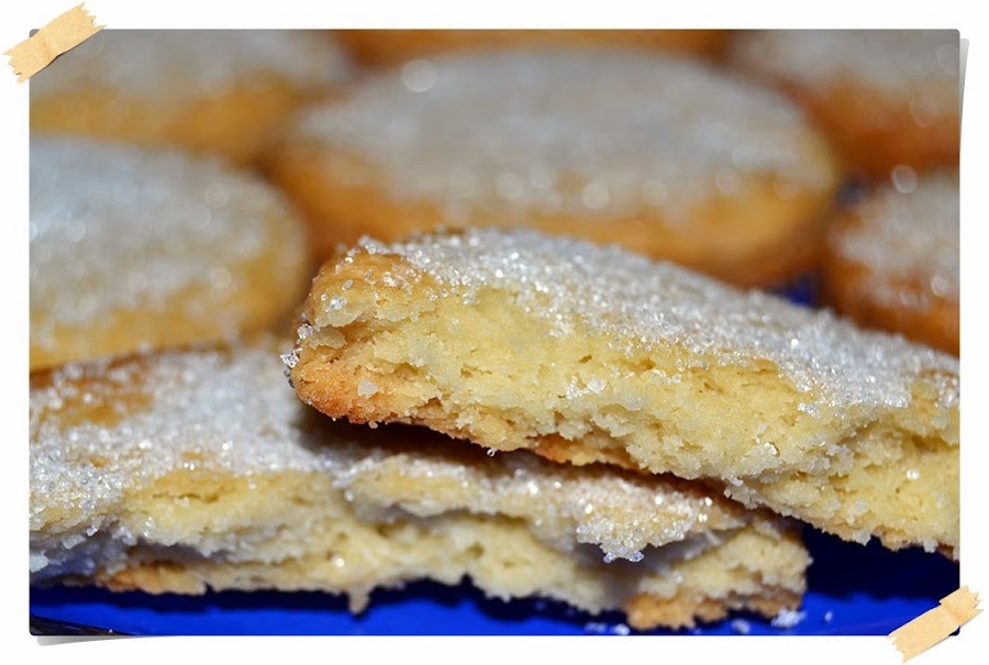 Vamos cogiendo trozos de masa y los vamos amasando con ayuda de un rodillo entre dos laminas de silicona de horno, para que salgan todos los Enaceitados con el mismo grosor (medio centímetro más o menos). Los vamos cortando con un vaso o un cortador de galletas, de unos 6 o 7 centímetros de diámetro. Preparamos una o varias bandejas de horno con papel vegetal, y los vamos poniendo sobre ellas. Cuando ya estén listos todos, los metemos al horno previamente precalentado a 250 grados, y los horneamos durante 20 minutos hasta que estén dorados. Los sacamos y les echamos abundante azúcar por encima. Y ya solo nos quedará preparar un buen café y acompañarlo de nuestros Enaceitados! ;)