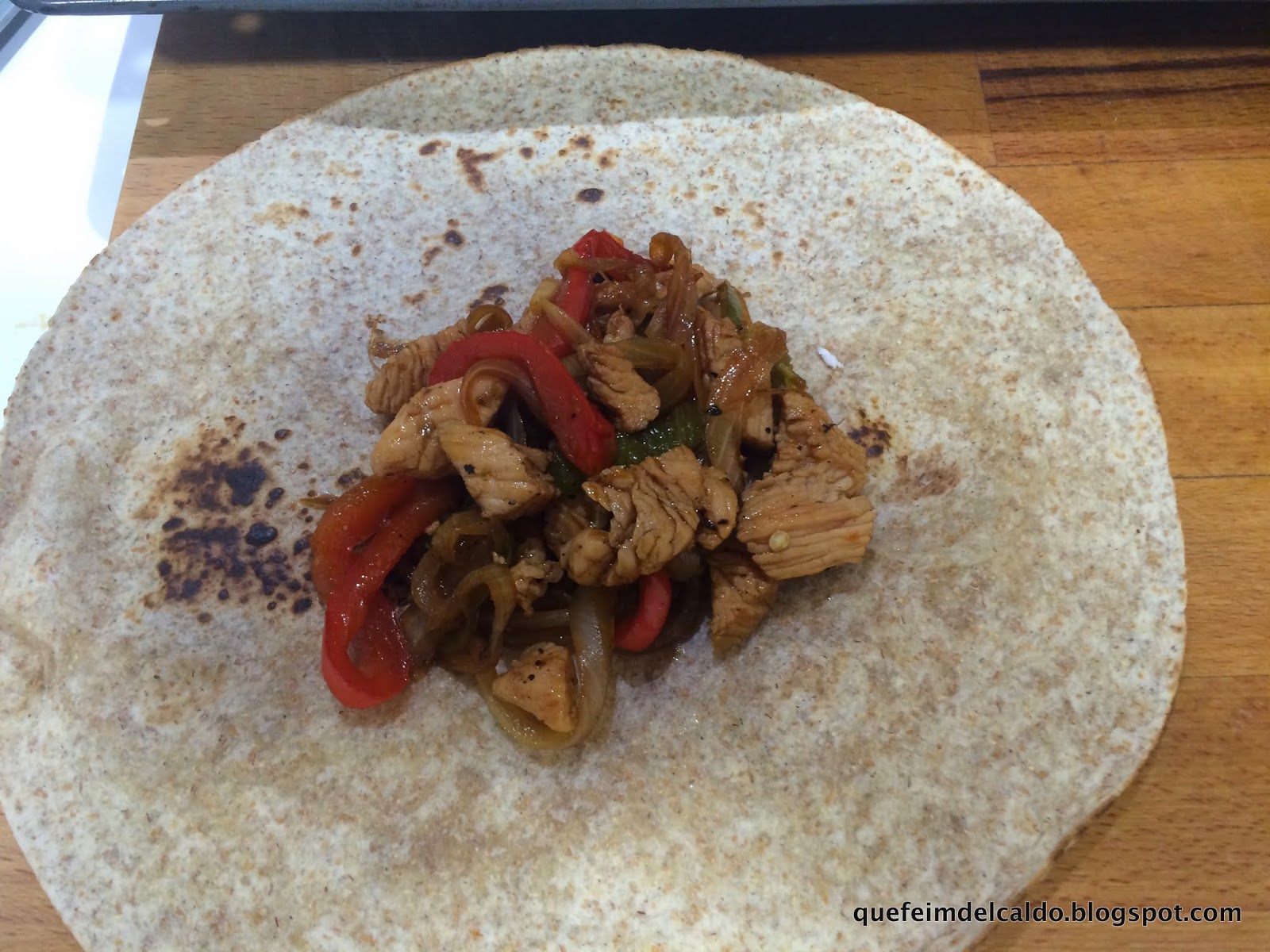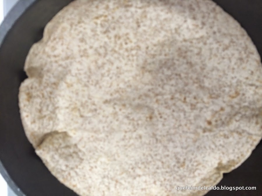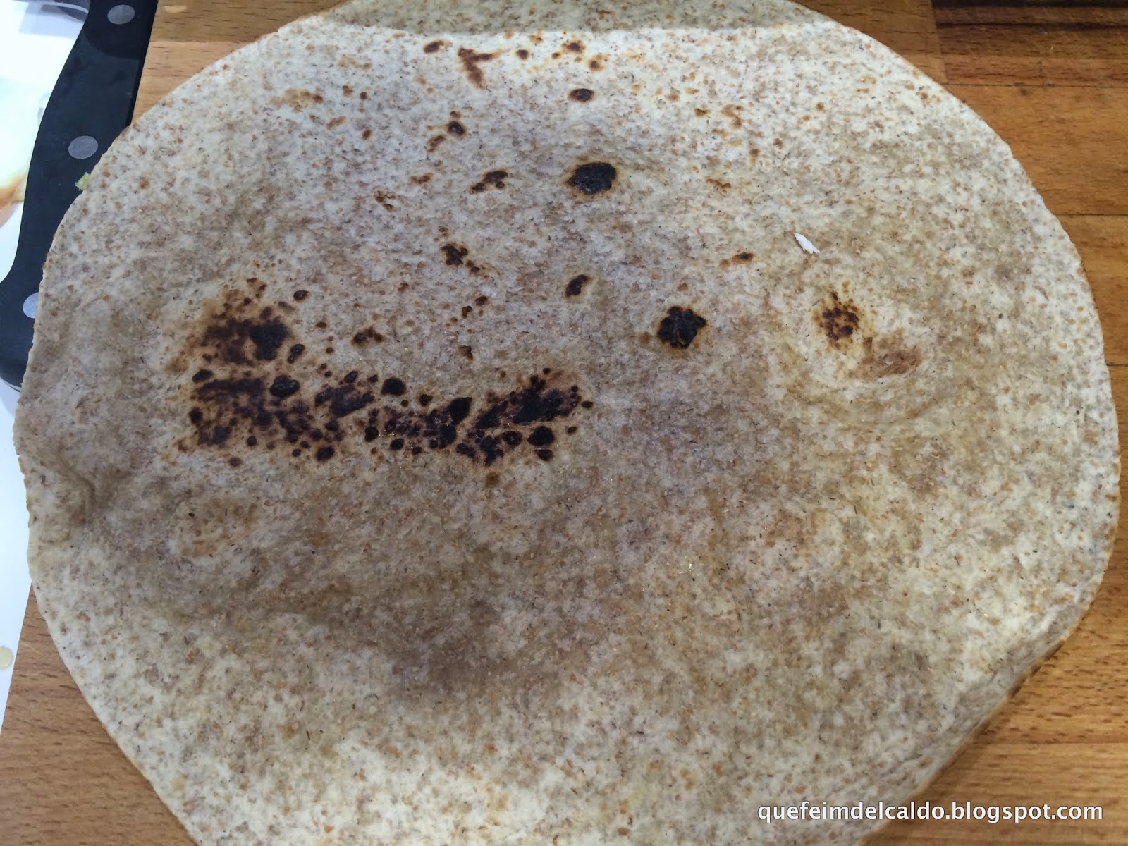 En la misma sartén donde hemos hecho las verduras y el pollo tostamos las tortitas de maíz.