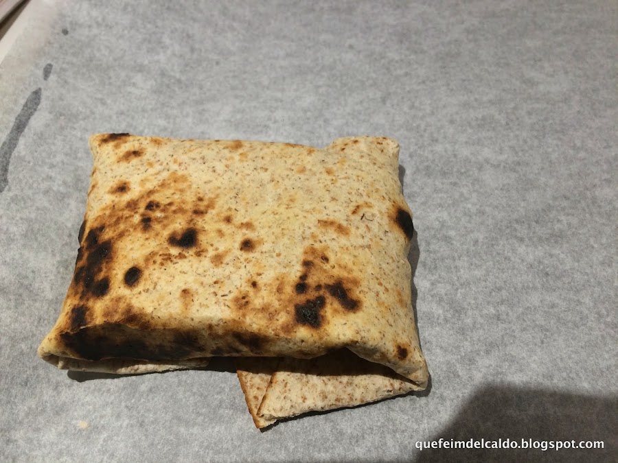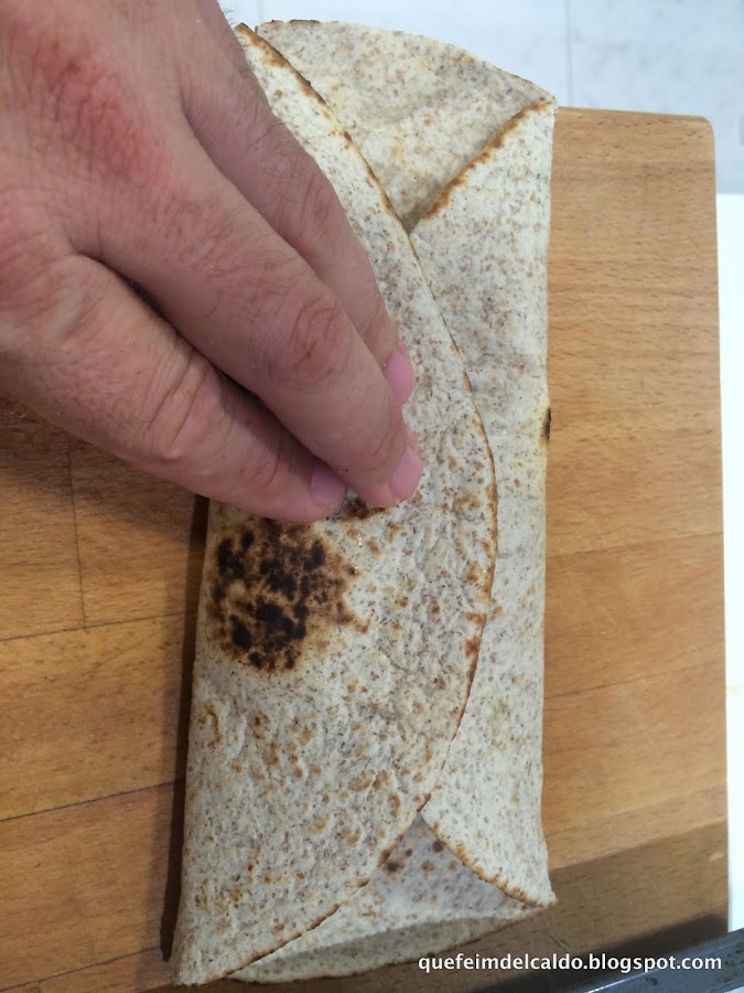 Dobalmos la tortita de arriba a abajo y de abajo arriba. Y de derecha a izquierda y de izquierda a derecha.