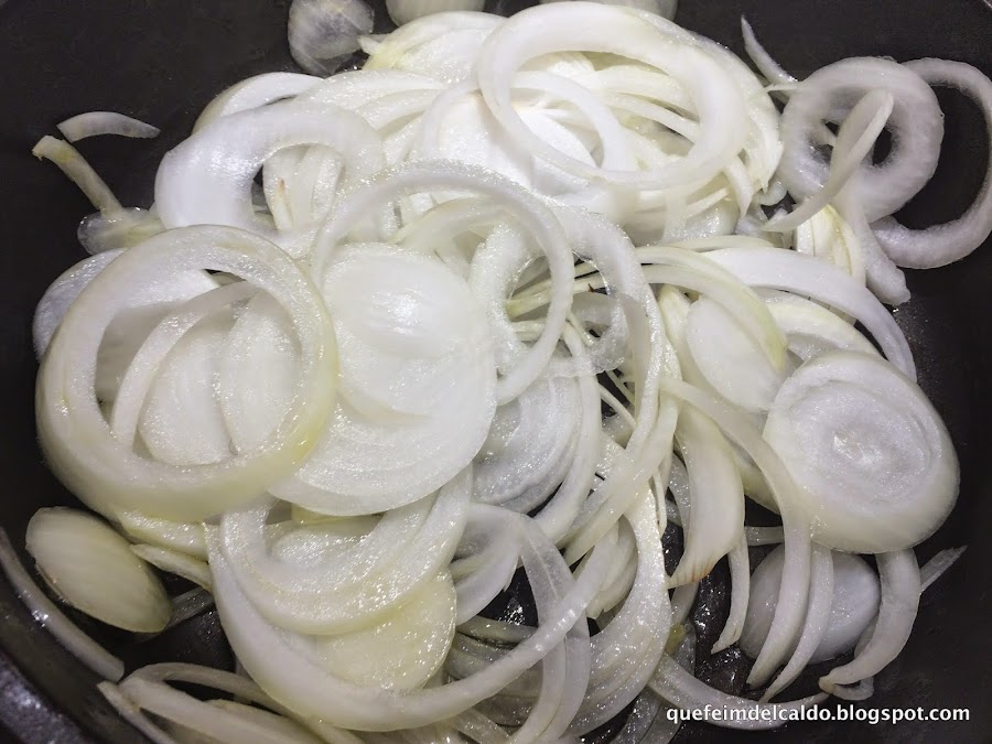 Una vez cortada la cebolla la deshacemos y la ponemos en una sartén con una cucharada sopera de aceite de oliva.