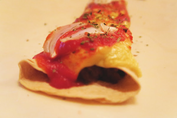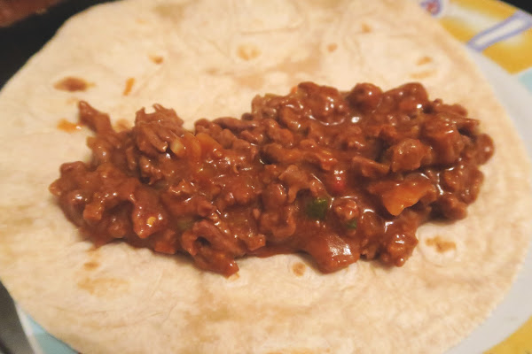 En un plato, estirar las tortillas de maíz, de a una e ir añadiendo la carne preparada, como rellenando un burrito mexicano, cuidando de que no se desparrame por las orillas. Enrollar y dejar en una fuente. Repetir este paso hasta completar el proceso con cada tortilla.