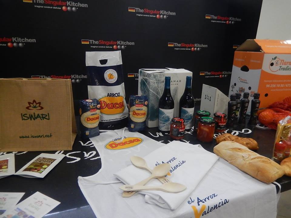 La empresas colaboradoras: Arroz Dacsa;Un paquete de arroz,un delantal una cuchara de madera y una bolsa.