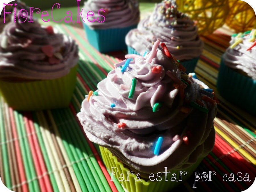 Unos sencillos cupcakes con crema de queso, pero con una pinta deliciosa tiene Chus en su blog ?Para estar por casa?. El color lila del frosting le dan un toque distinguido a la mesa, así que son ideales para alegrar una merienda o un brunch.