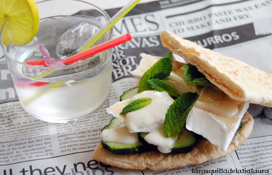 Marina, de "La rosquilla de la tía Laura" me ha convencido con este bocata de pan de pita y queso brie, pepino y menta. Ella dice que ideal para el veranito, pero yo creo que para comer un día en la oficina o para merendar en el parque tampoco está mal!!