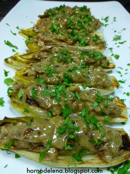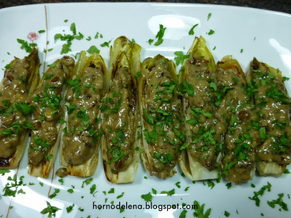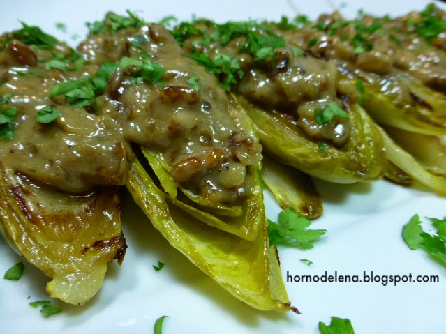 Aunque la salsa no es tan líquida como la original el resultado en muy bueno. Esa mezcla de las endivias con las nueces y las anchoas me encanta.