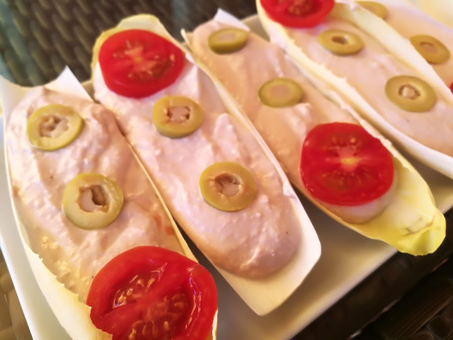 - Deshacemos las hojas de las endivias, separándolas, que hagan forma de barca