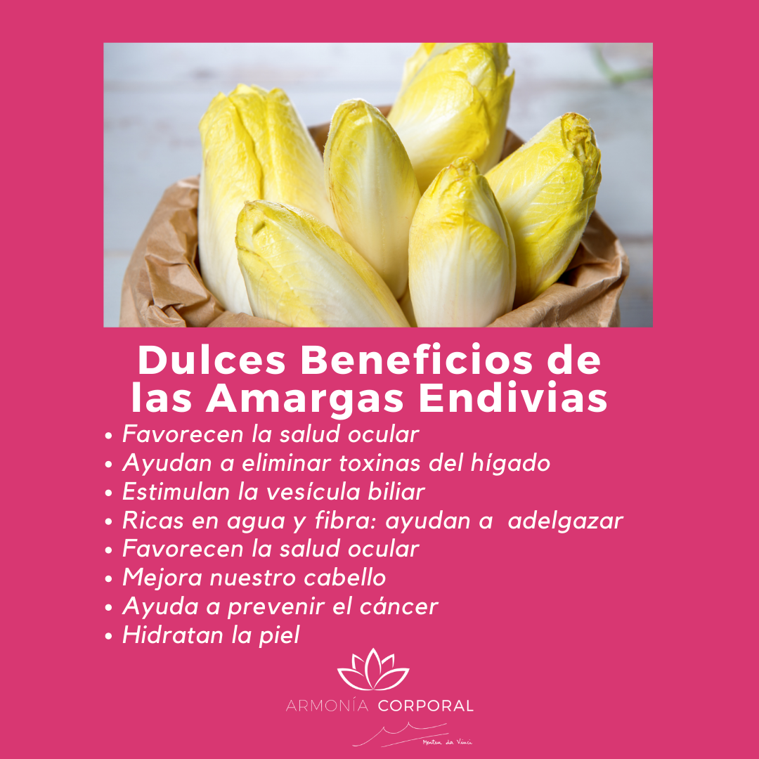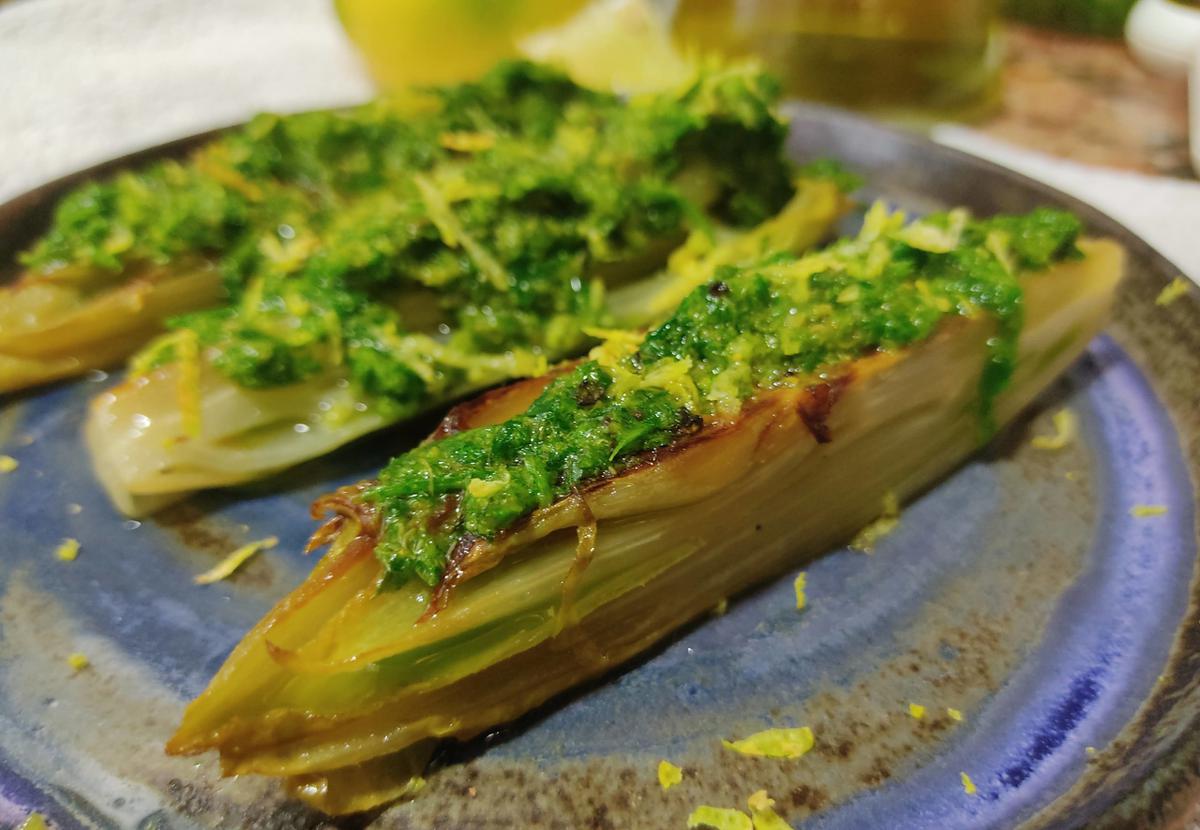 Aprender a abrazar lo amargo de la vida, significa aprender a abrazar la vida misma en toda su amplia gama, entenderla de una manera más integrativa, porque todos los momentos vividos en presencia nos nutren y nos refuerzan. La persona que vaya buscando sólo momentos dulces en su vida y en la nevera, que no se extrañe de que luego le suba el azúcar en sangre.Ingredientes de las Endivias con salsa Gremolata: