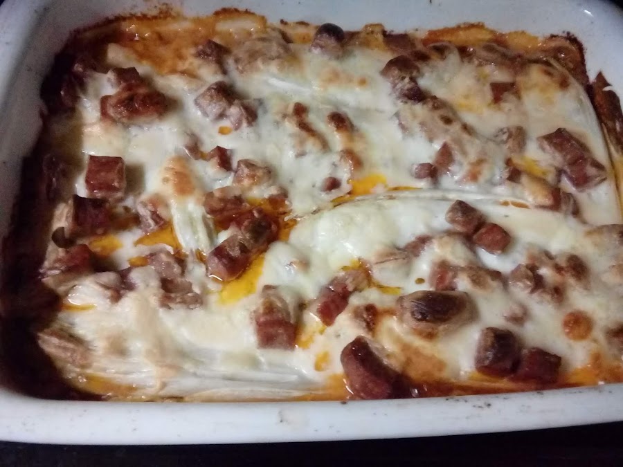 Estas endivias han salido realmente buenas y aunque la foto no es de las mejores, no puedo dejar de publicarlas. Quedan tiernas y pierden su característico amargor. Hasta los menos aficionados a las verduras pueden encontrar así una forma de introducirlas en la dieta.