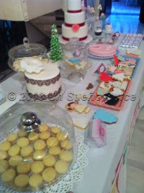 Poco espacio quedaba en la mesa para los dulces dedicados a comuniones, cumpleaños, aniversarios o cualquier otra celebración. Se coló un arbolito de Navidad entre tarta y tarta y unos deliciosos alfajores.