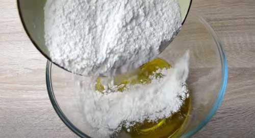 Esta receta nos va a llevar muy poco tiempo el prepararla y además no puede ser más fácil.Lo primero que haremos es poner en un bol o recipiente amplio, el vino blanco, el aceite de oliva y la harina de trigo.