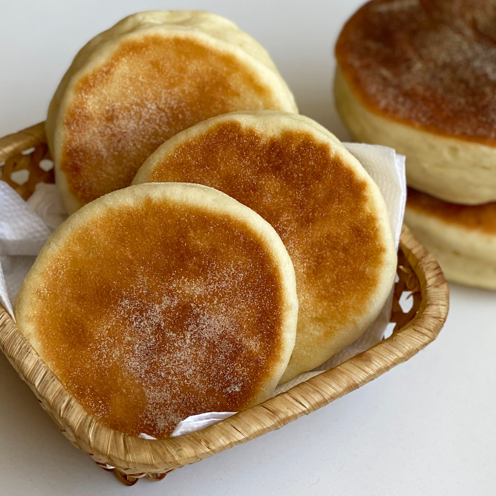 Podes prepararlo en una batidora con brazo de amasado a mano.Mezclar la harina y la sal.Incorporar la levadura previamente disuelta en la leche tibia junto al azúcar. Amasar unos minutos hasta formar la masa. Incorporar la manteca a temperatura ambiente y masar 10 minutos.Dejar reposar una hora y media en un Bowl tapado.Retirar del Bowl, espolvorear la mesada con la semola o harina de maíz y estirar con un palote hasta que quede de 2, 5 cm de alto.Cortar con un cortante de forma circular y colocar cada pieza sobre un plástico separador para freezer.Dejar leudar 15 minutos tapado.En una sartén a fuego medio bajo colocar las piezas y cocinar con tapa durante unos 7 minutos.Destapar, dar vuelta y cocinar otros 7 minutos tapado.Listo! A disfrutar!