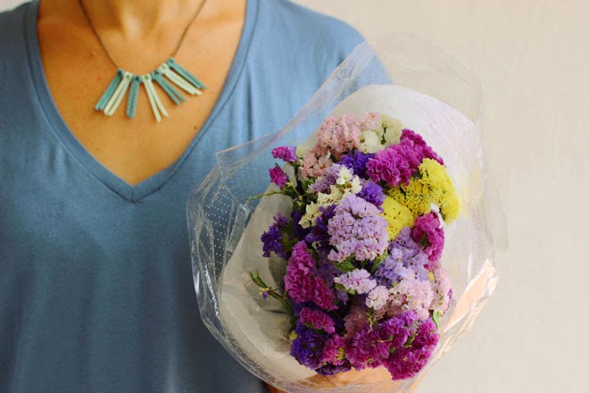 - Flores (cualquiera de tamaño pequeño sirve: las que utilicé son Siemprevivas y Margaritas)