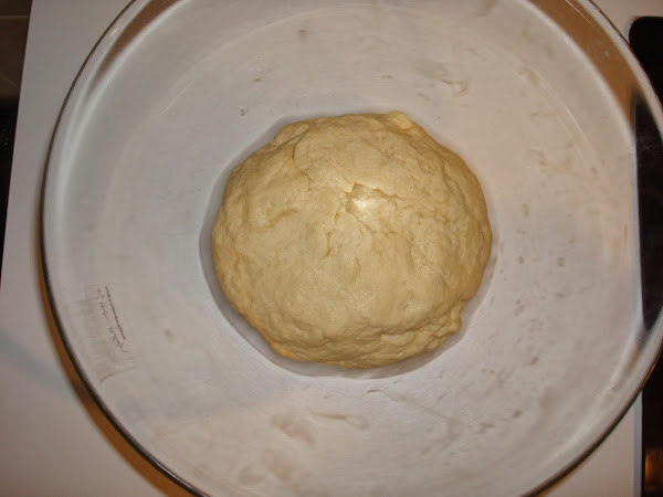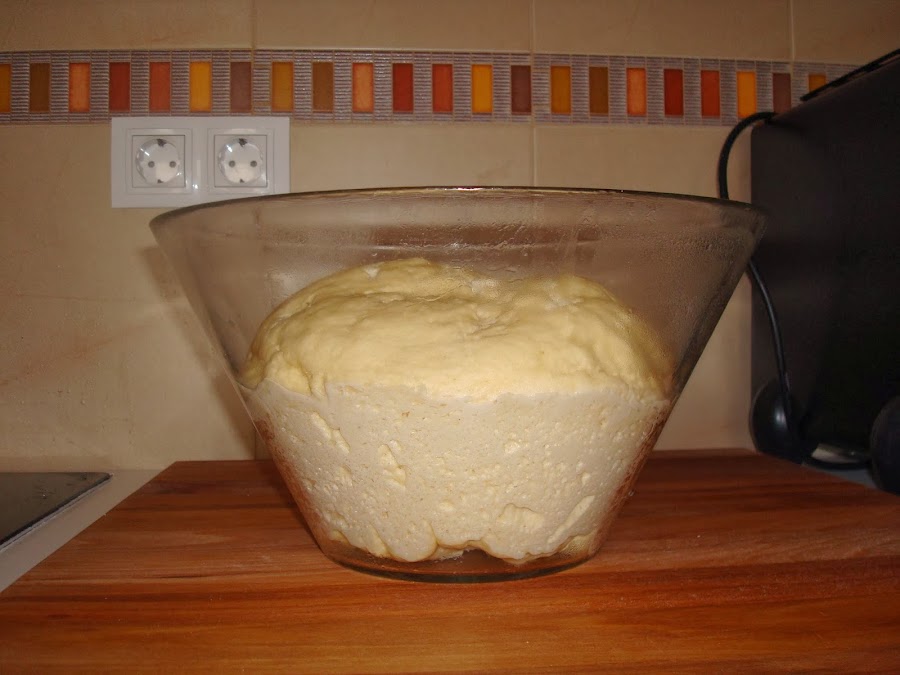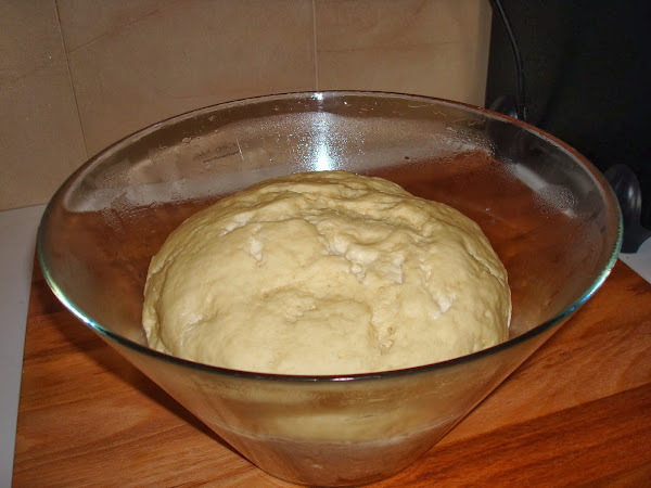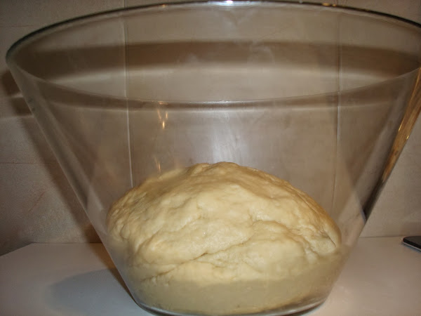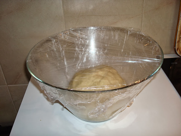 A continuación con la masa haces una bola, la traspasas a otro bol limpio (por comodidad) y lo cubro con papel film dejando reposar una hora aproximadamente en un lugar cálido para que la masa aumente de tamaño.