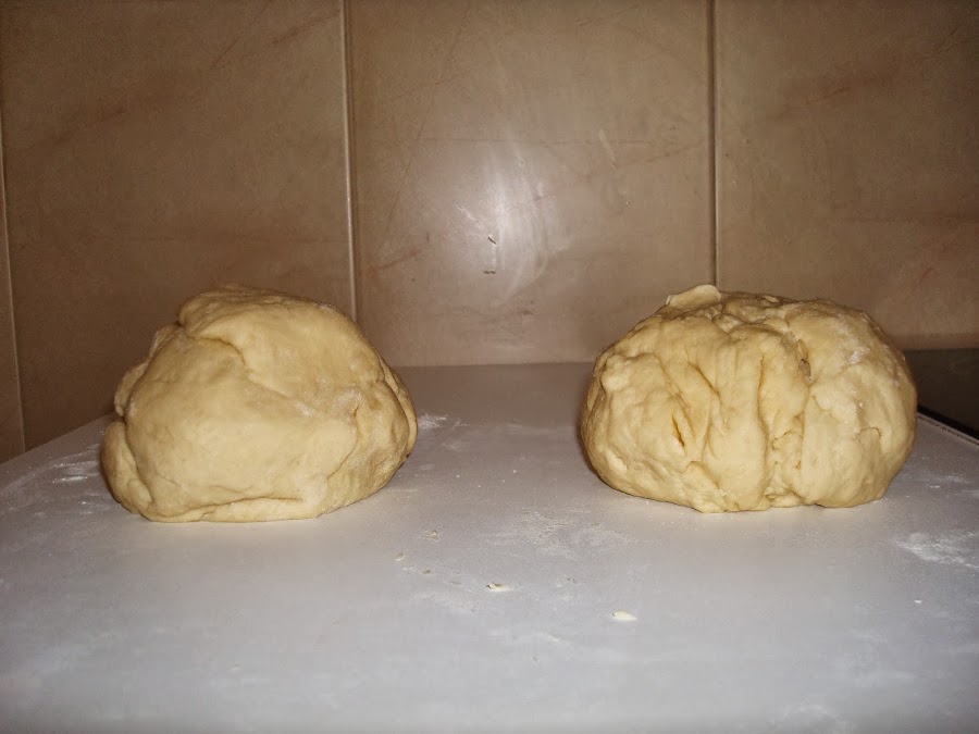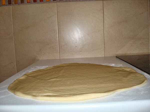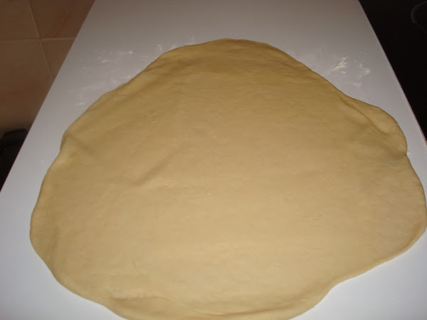 El siguiente paso ya que la masa esta lista , tenemos que darle forma para ir formando nuestros rollitos. Yo parto la mas en 2 para realizar 2 rollitos y que sea mas maleable.