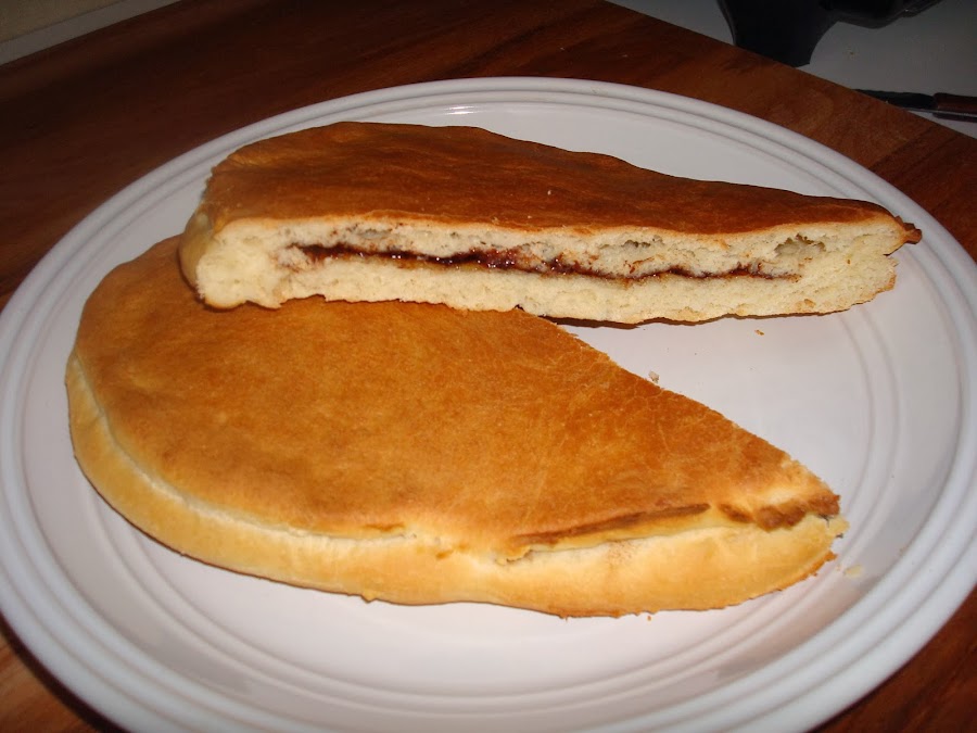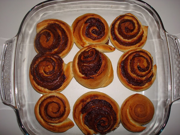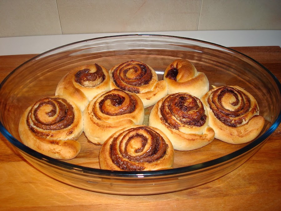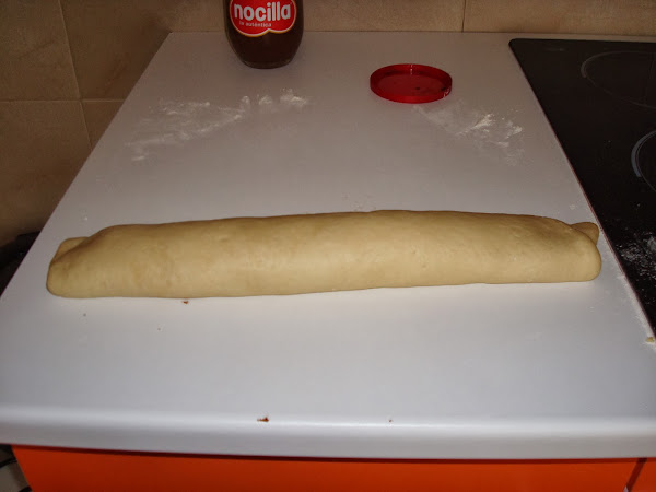 Una vez que tenemos la masa extendida echamos el relleno deseado, yo en este caso he utilizado nocilla (la cantidad a cada uno la cantidad que le guste).
