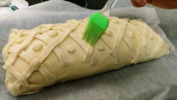 *La decoración es a gusto de ustedes, antes de hornear pintar con huevo batido para darle brillo.