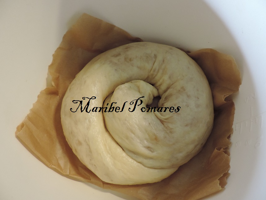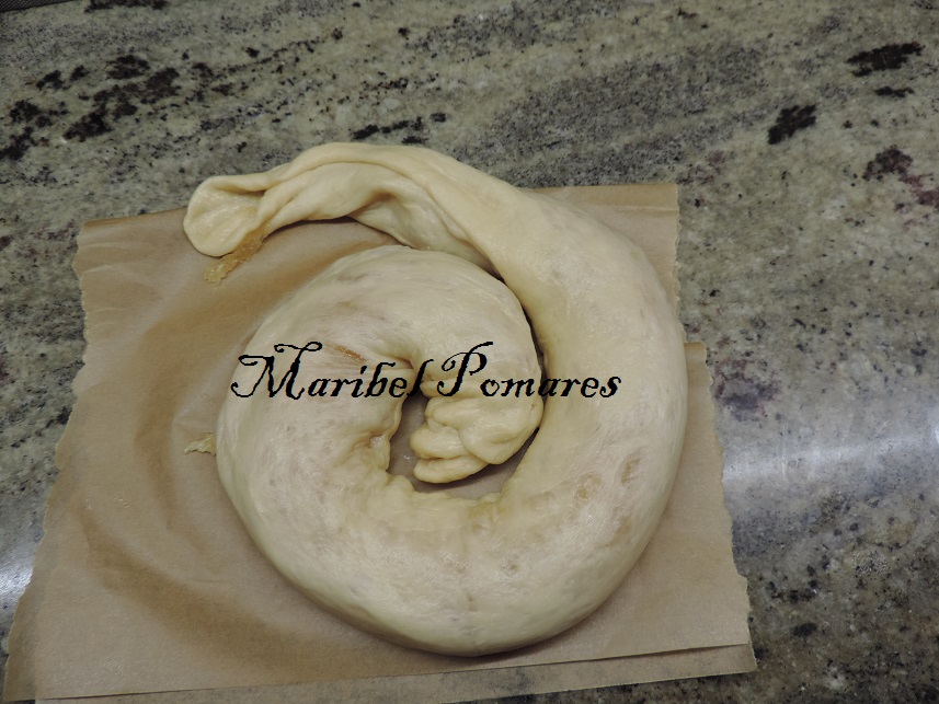 Empezamos a enrollar la ensaimada encima del papel.