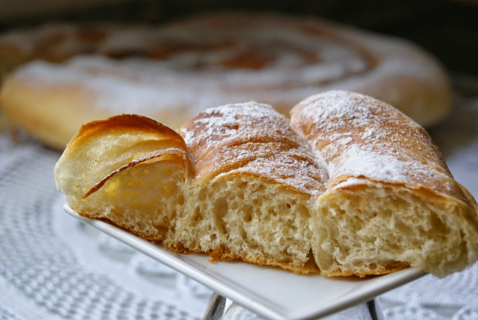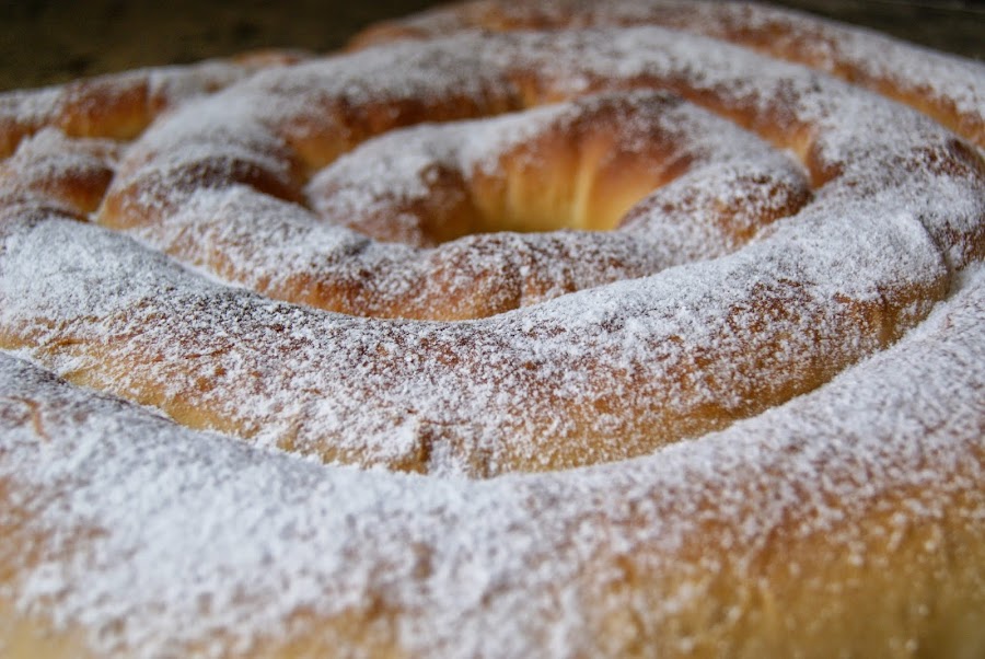 8.- Transcurridas las doce horas, veremos que la levadura ha obrado magia en nuestra ensaimada y estará muy hinchadita. No hay que tocarla para no hundirla. Precalentamos el horno a 175ºC y la horneamos durante 15 a 20 minutos. Pasado ese tiempo, la sacamos y la dejamos enfriar.