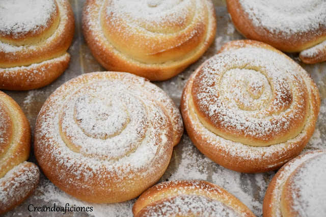 Pincelamos las ensaimadas con leche y horneamos unos 9 minutos.