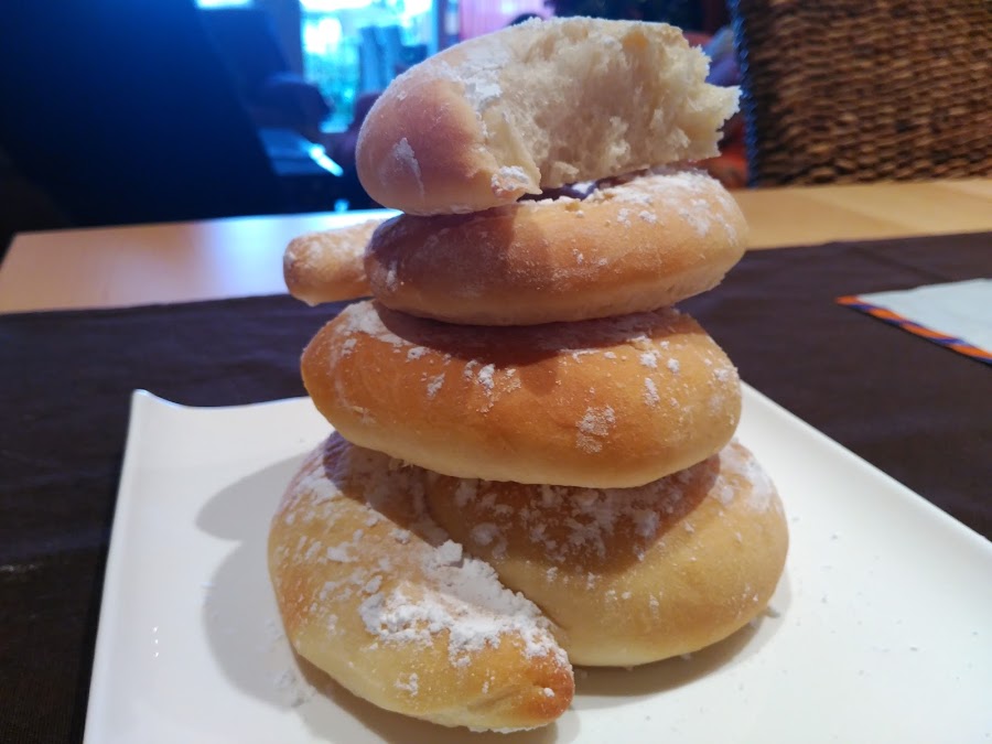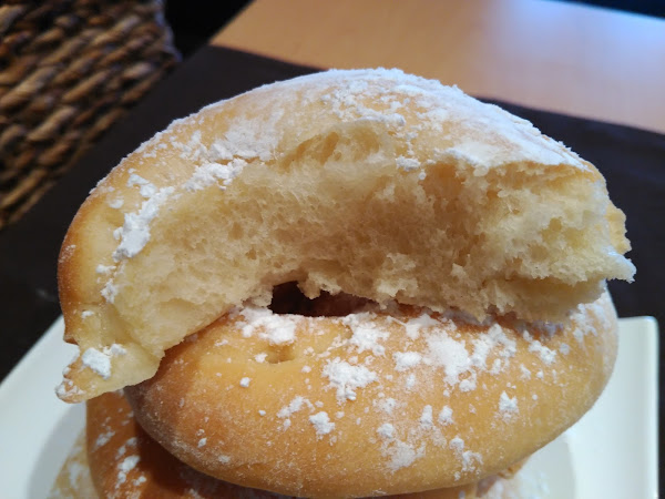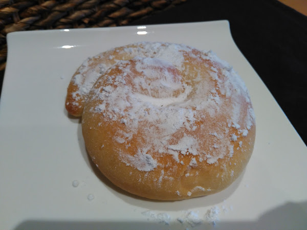 El resultado son unas ensaimadas que con "no demasiado trabajo" quedan estupendas, hasta al día siguiente. Quise probar a rellenar algunas con sobrasada, como las de Mallorca y estaban ESPECTACULARES!! una delicia de las buenas!! La masa es exactamente la misma que la de las Bombas de nata (crema de leche), otro postre impresionante!