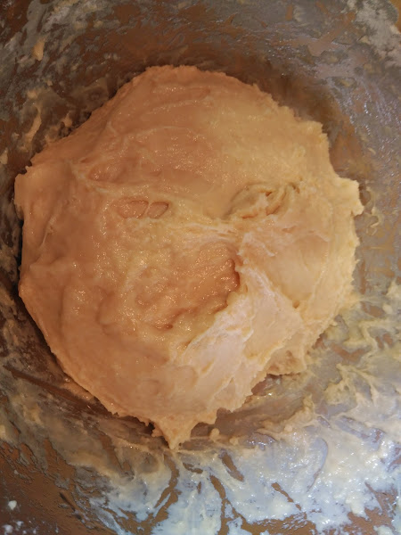 - Agregamos el aceite poco a poco, añadiendo un poco y amasando, otro poco más y volver a amasar...así hasta acabar el aceite. Volvemos a tapar y dejamos reposar 30 minutos más.