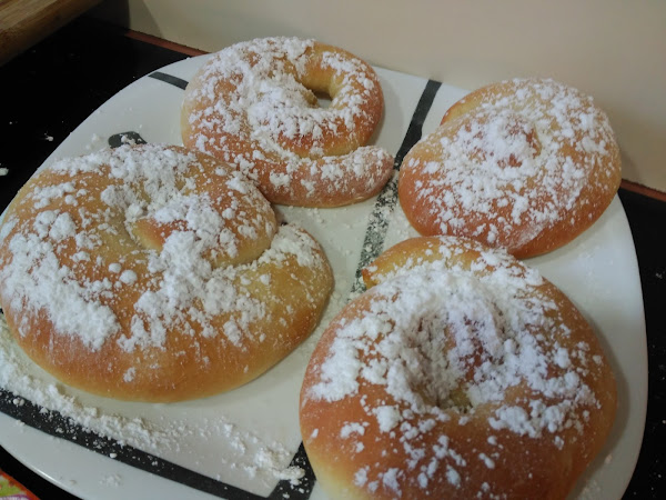 - Horneamos en el horno precalentado a 160º unos 15 minutos, hasta que veamos que se doran, y espolvoreamos el azúcar glas cuando todavía están calientes. Salen unas 12 más o menos.