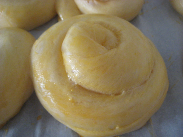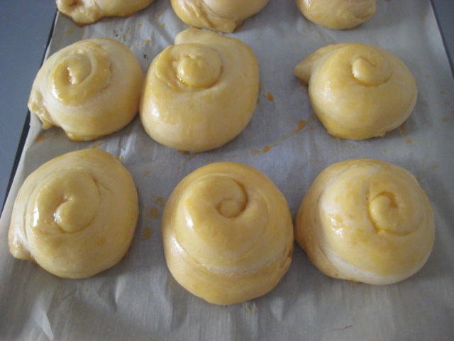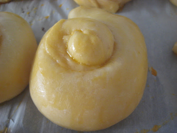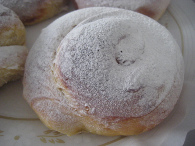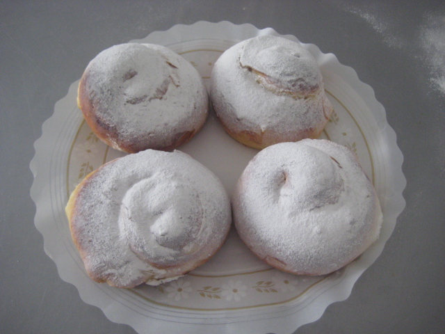 Preparación: Batir los huevos con el azúcar y el agua para que el azúcar se vaya diluyendo. Seguidamente añadir la masa madre, el mejorante panario, si se emplea, la levadura y la harina. Amasar durante un buen rato, entre 30 y 60 minutos, para obtener una masa muy elástica que al tomar una porción con la mano y estirar se quede casi transparente. En este punto, retirar de la amasadora y colocar en un bol muy ligeramente aceitado y reposar durante 3 horas o hasta el día siguiente, bien tapada en la nevera. Pasado el tiempo de reposo, pesar porciones de 100-125 ó 250 gr. dependiendo del tamaño de ensaimada que deseemos elaborar. Bolear las piezas y dejar reposar 15 minutos, tapadas, sobre la mesa aceitada ligeramente con aceite de girasol. La masa de ensaimadas se trabaja con aceite y no con harina. Estirar las bolas con un rodillo hasta formar una lengua larga o una elipse y untar generosamente con manteca de cerdo, Una vez hecho esto, estirar la masa metiendo los dedos para hacerla muy fina y que al hornear quede hojaldrado o en capas. Una vez bien estirada, enrollar y reposar los rollos unos minutos. Seguidamente alargarlos un poco con la mano y luego golpear en la mesa para que se alarguen bien. Sobre bandeja de horno con papel, enroscar para dar la clásica forma de ensaimada. Pincelar con huevo o con agua y fermentar en un lugar cerrado, a temperatura ambiente y con un poco de humedad durante 18-20 horas. Seguidamente cocer en el horno a 195º C durante 10-12 minutos. Se puede hacer mitad de la cocción con tiro cerrado y la otra mitad abierto. Una vez hechas, retirar del horno, dejar enfriar un poco y salpicar con abundante azúcar glas.