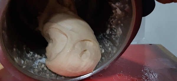 Esta vez no he hecho yo la receta, la ha hecho mi chico. Le encantan las ensaimadas y siempre pensábamos que necesitaban más elaboración y varios levados y por eso no nos animábamos a hacerlas. Pero viendo la receta en Cookidoo, calculamos el tiempo que necesitaba de reposo y el sábado por la noche se puso manos a la obra.
