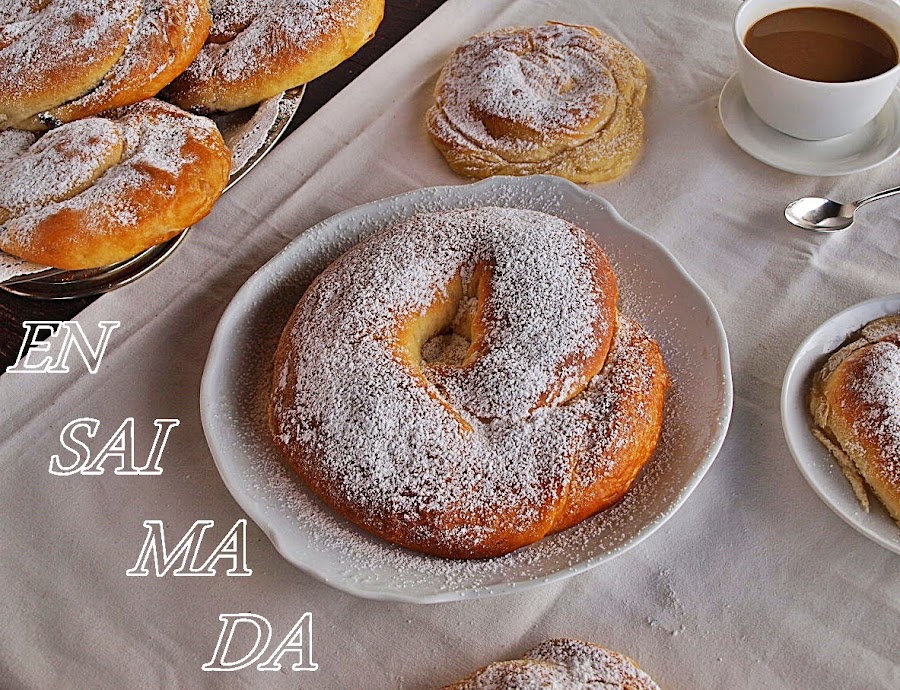 Estuve enredando en la cocina e hice su dulce emblemático por excelencia, la ENSAIMADA. Tocaba receta dulce esta vez en el Blog y me apetecía después de haber hecho la Coca de Albaricoques, seguir andurreando por la interesante gastronomía de aquellas Islas.