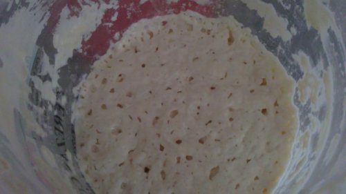 En esta foto de la derecha veis la masa madre que use, estaba bien agria.