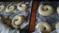 Despues lo enrollas formando la ensaimada. Y lo pones en una bandeja de horno enharinada. Deja bastante espacio cuando formes la ensaimada, porque sube bastante y puede faltarle sitio. Espolvorealas con harina.