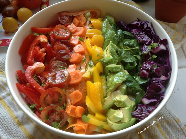3. Dispon las verduras según los colores y rocíalas con el aliño.