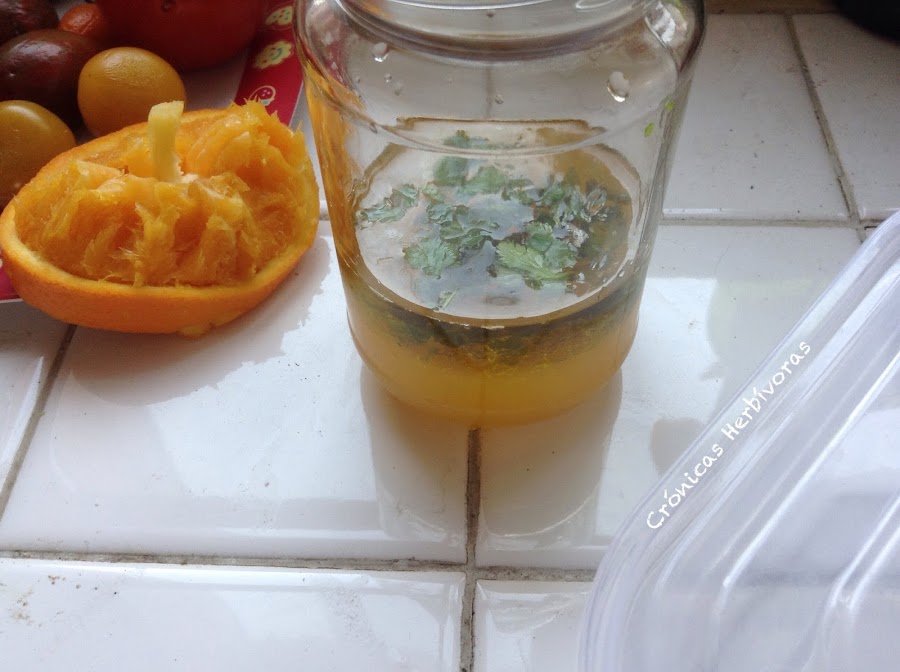 3. Mezcla los ingredientes del aliño en un botecito y mueve bien.